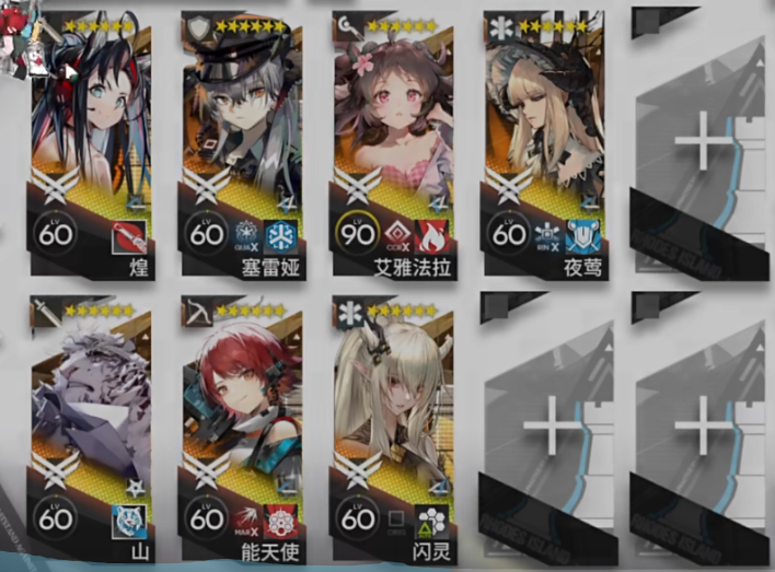 需求干员:煌、山、塞雷娅(重装)、能天使、艾雅法拉、闪灵(任意奶)、夜莺(任意奶)