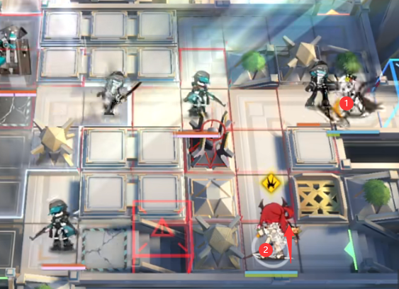 凯尔希技能打完后撤退,如图位置部署泥岩守家门,史尔特尔准备黄昏砍BOSS。