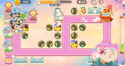 2、我们需要在终点的地方建造一个满级星星,用来攻击会飞的兔子,在右侧继续建造船锚炮塔。