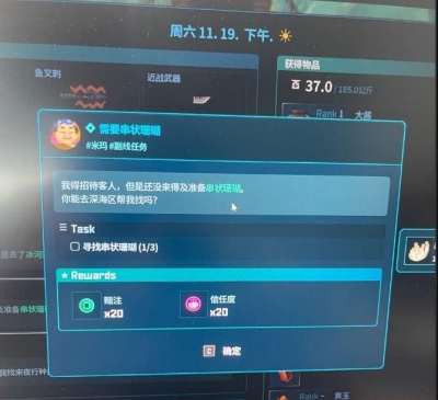 2、我们来到餐馆,这是一个由米玛发布的支线任务,需要我们前往深海找。