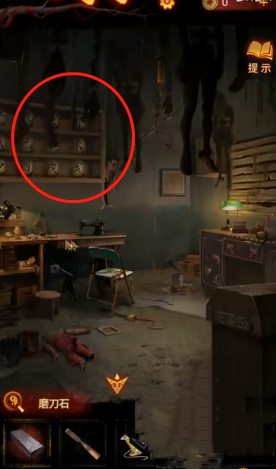 8、使用钥匙将屋子内部的门打开,使用磨刀石砸开开关,调整图片中时钟的位置可以获得道具线轴。