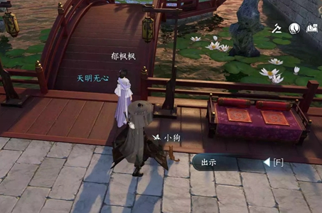 3、最后,玩家需要来到汴京坐标(1142.884)的位置把【包子】喂给【小狗】,之后进入任务场景后和【李师师】对话即可完成任务。