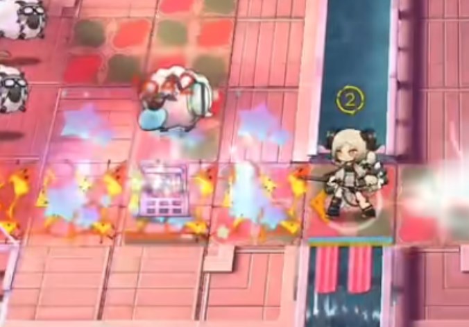 这时左下应该已经三个被抢回去,等水汽瓶CD好下一个羊到之前放在下图位置打爆即可过关。