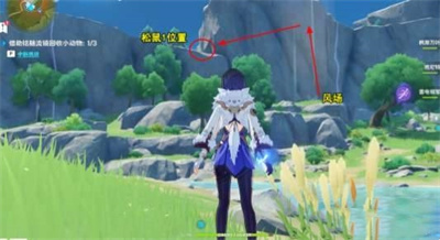 站在树上,可以看到七天神像和风力区域,只需要在靠近风力区域的树上收集全部物品即可完成任务。