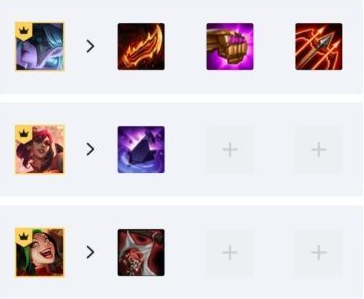 北地之怒-庄瑟妮、魔法猫咪-悠米、魂锁典狱长-锤石、魔蛇之拥-卡西奥佩娅、戏命师-烬、暴走萝莉-金克丝、暗夜猎手-薇恩、迅捷斥候-提莫