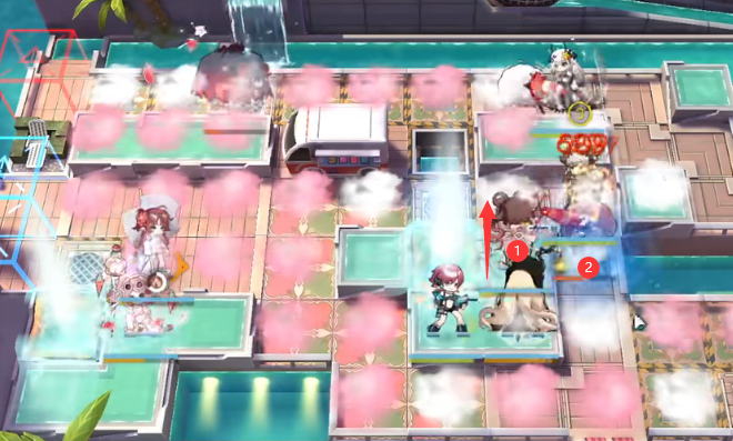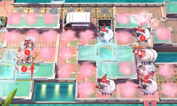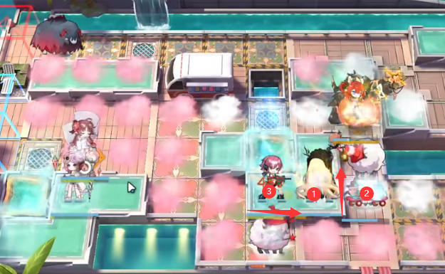 最后部署史尔特尔在如图位置,澄闪技能好了就开,泥岩面前粉了就下汽水瓶改白。右下出羊开史尔特尔技能。