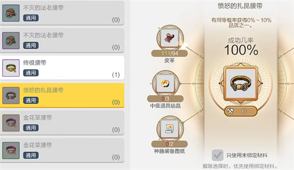 7、挑战成功玩家有几率获得扎昆的腰带武器和合成材料道具。