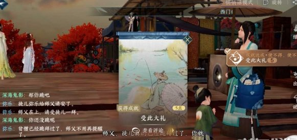 4、NPC答应拜你为师后就让他行拜师礼,如果只是口头说跪拜但是没有弹成就的话就像我下图一样一直催他就好了。