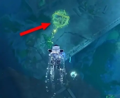 1、找到在水色潮痕中被藤蔓包裹的宝箱,打开;