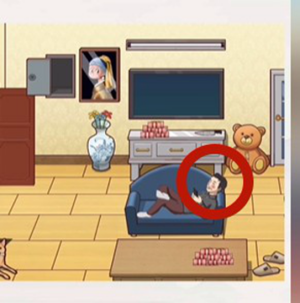 5、点击沙发上男人的头发。