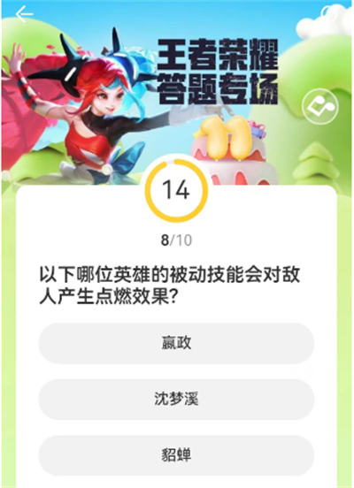 8、以下哪位英雄的被动技能会对敌人产生点燃效果?【沈梦溪】