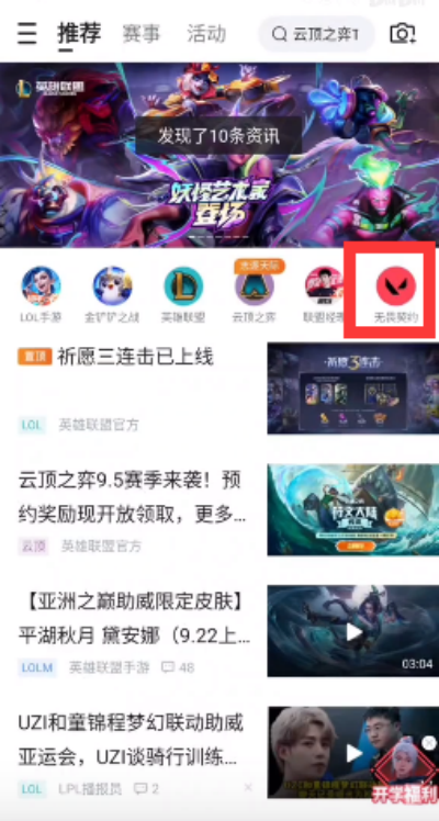 1.首先玩家需要下载掌上英雄联盟,登陆APP后找到【无畏契约】频道入口;