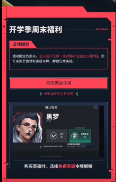 以上就是小编为大家带来的关于《无畏契约》开学季活动免费英雄领取分享了,想要了解更多资讯,敬请关注本站。
