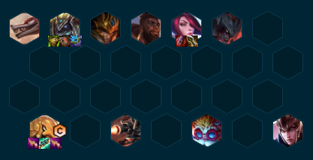 2、构成羁绊:1大发明家、2暗裔、4恕瑞玛、2挑战者、2主宰、2裁决、2司令、3德玛西亚