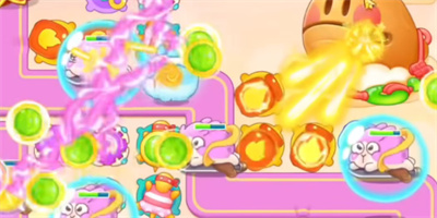 4、 最后木鱼附近的防御塔锁定木鱼,其他道具负责清理兔子,切记及时升级防御塔;