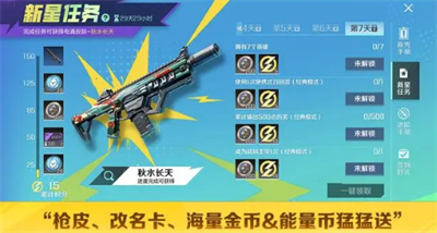 积分可以解锁阶段能量币、改名卡、金币,最终可获得电涌冲锋枪皮肤-秋水长天。