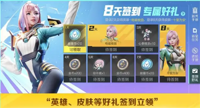 在活动期间,登录2天可以获得英雄电磁夜曲-菲儿,登录8天可以获得电磁夜曲皮肤-十里为安。