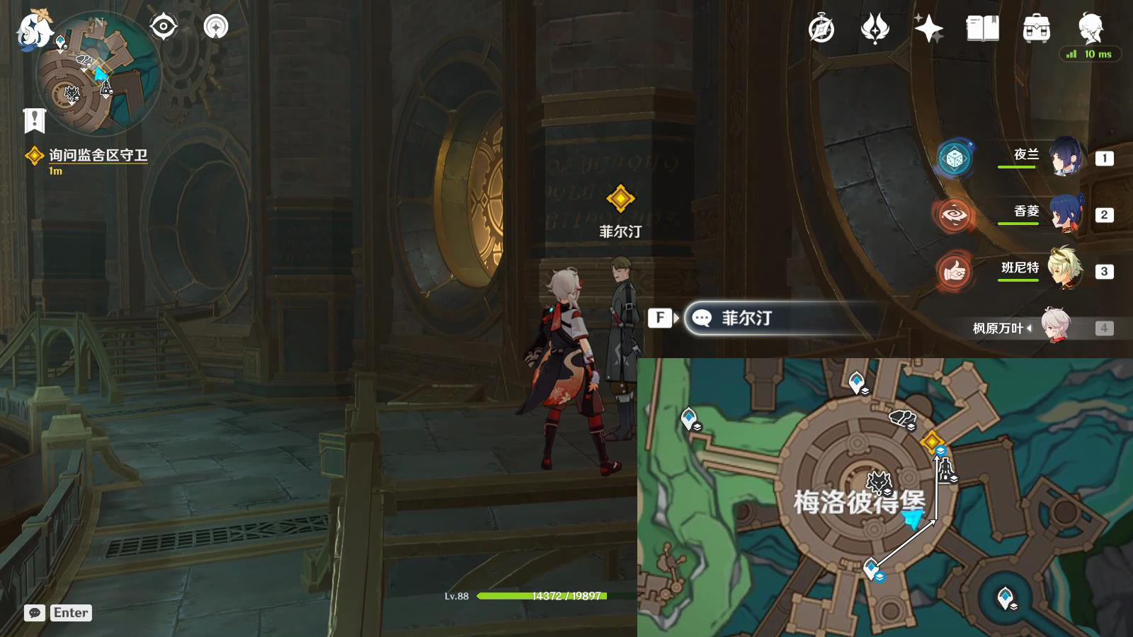 前往监舍区等候,与派蒙对话