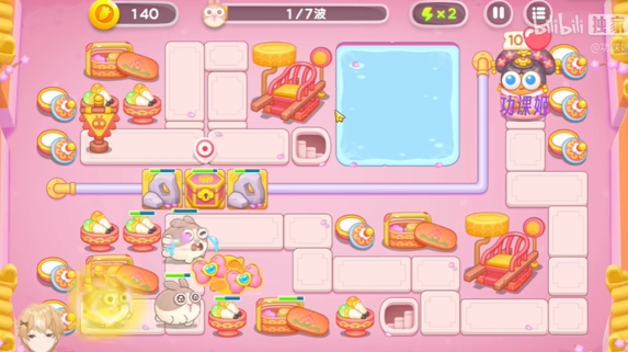 4、继续在出怪口补充蝴蝶结压低怪物血量和升级周围的炮台。