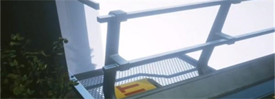 5.在吊灯上方后朝着后方攀爬可来到阳台处,向右方一直前进可碰见逃生电梯,打开逃生电梯,利用电梯延伸出来的部分继续向上爬;