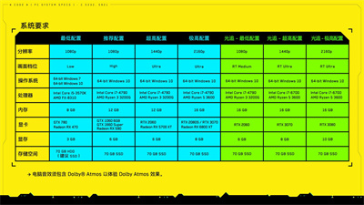 最低配置要求GTX-780/AMD的RX-740,推荐配置要求GTX-1060/AMD的R9-fury