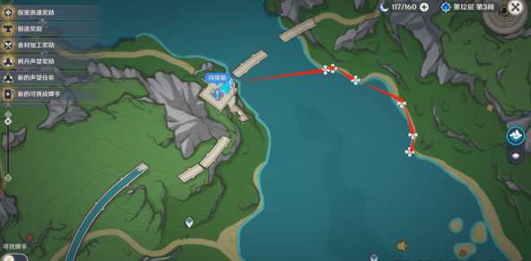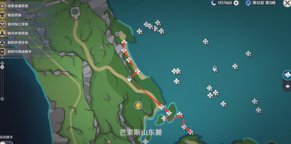 三、幽光星星采集路线芒索斯山东麓海里,共18个。
