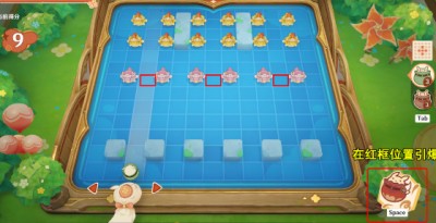 2、第一排清完后在炸弹射到红框位置是引爆,击败中间一百;