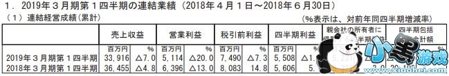 导读:日本DeNA公司今天下午公布了2019年3月期第1四半期(2019年4月1日至2019年6月30日)的累计连结财报,第一季度的销售额为339亿日元(同比去年同期减少7%),营业利润为51亿日元(同比减少20%),最终利润为52亿日元(同比减少1.7%),整体呈现小幅减收增益状态。