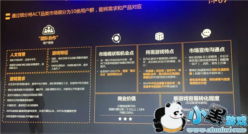 并且把这些用户群体对应的产品做一一对接。比如说这边的团队协作的用户,我们看到他的人文背景、游戏特征、游戏需求,我们会跟产品团队讨论市场环境和机会点是什么,所需要的游戏服务的特点是什么,以及我们怎么样在市场宣传上跟他们做好用户的沟通和搭配。