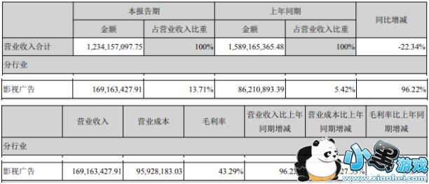 三、影视广告业务营收1.69亿,同比增加96.22%