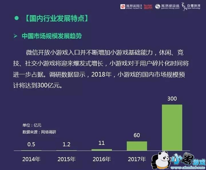 如白鹭科技就联合凤凰网游戏发布一篇《2019年小游戏行业白皮书》,看好小游戏领域。白皮书认为2019年国内小游戏用户将达到5亿,市场规模会达到300亿,环比增长400%。