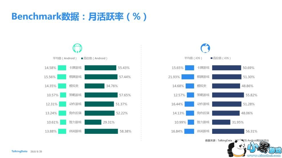 用户活跃度:2019年7月,整体上移动游戏用户在Android和iOS平台的活跃情况相比上月有所降温,且Android平台的降幅高于iOS平台,其中,Android平台智力类移动游戏的周活跃率环比下滑2.9%,月活跃率则环比下滑10.4%;