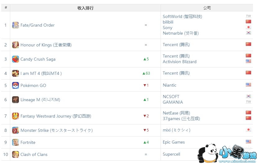 而一直在iOS上表现强劲的《堡垒之夜》,在上个月也开启了安卓版本的限定预约测试,这让这款目前全球最流行的游戏的手游版在8月的收入榜上又晋升4名,这也是《堡垒之夜》第一次挤进前10,相信在安卓版全面开放后这个名次还会爬升。 老牌消除游戏《糖果粉碎传奇》生命力依旧顽强,此次更是来到第3的位置。