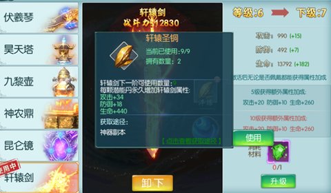 神器可使用潜能丹来永久性提升属性,每把神起可使用的潜能丹上限数量与神器的等级相关,等级越高的神器,可使用的潜能丹数量也就越多。