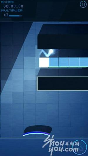游戏介绍:游戏的玩法类似“打砖块”,左右快速滑动挡板接住弹落的球,并用它打掉所有方块。游戏中关卡的变化非常多样,比如出现移动的方块进行干扰,或是不同大小的方块错落排布。
