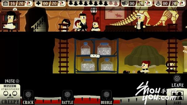 毫不夸张地说游戏中的每件家具用品都可以“附身”,而且每种东西的吓人指数都不同哦,因为功能不同嘛!我们想要完全了解每样道具具体的功效必须先积累一定的能量,先吓跑一批人然后才能集聚能量看见每件东西真实的力量!比如你看见一只恐龙,它最开始只会摇晃,你可以在屏幕下方看见能量键只有一个可以启动,其他的都是问号,等到能量聚满了所有的按键就显示出子母,你就可以触发技能啦!