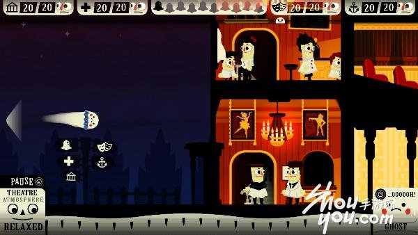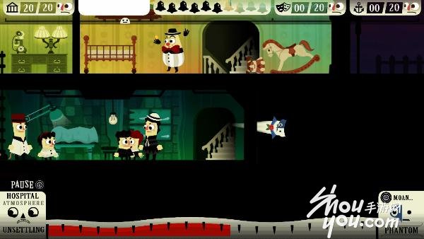 游戏界面上方显示了鬼怪的数量,每个房间内只要吓走20个人就算过关!游戏里目前只有4个关卡,真希望厂商快点出新关卡啊!看见游戏中人类被吓得哇哇大叫的样子真的很欢乐!