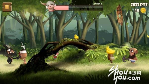 在游戏中巴蒂要不断地吃香蕉保持体力,否则很快会被海盗船长追上!要注意隐藏在树林里的香蕉哦!