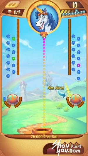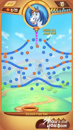 非常贴心的是,游戏自带放大镜功能,即每次瞄准都可以更注重细节。第三关开始,拥有瞄准虚线能力,可以一段距离上预判小球第一次的弹射方向。不同关卡还会搭配有不同道具,使用后可以让小球撞击力量变强,撞击范围更大。游戏时,屏幕下方会出现左右移动的罐子,如果小球刚好落入罐中,触发“Free Ball”会额外增加一只小球。