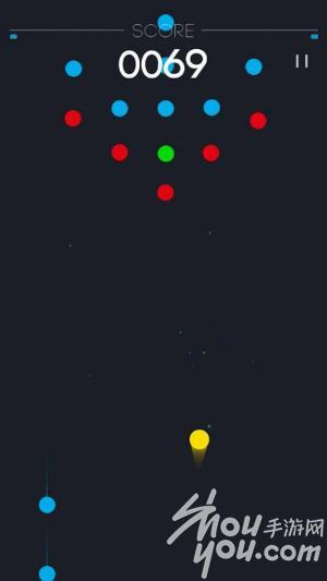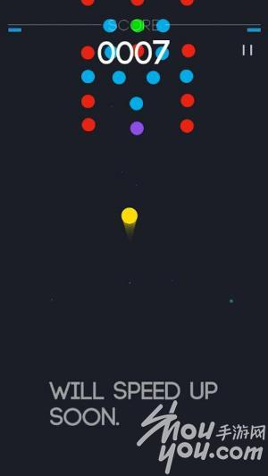 游戏画面:2D画面,画面风格非常的简单,甚至可以说是简陋,简单的画面结构几个不同颜色的点就是画面的全部了。不过这也是手残自虐式游戏的通病,毕竟它们不是靠画面素质来取悦用户的,或者它们压根就没打算取悦用户。。。