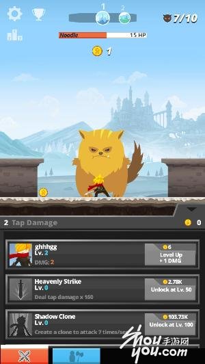 主角面对的是一个个巨怪,需要点击屏幕挥砍来杀死它们,巨怪像韭菜一样砍掉一个又出来一个,每 10 波巨怪出现一个 BOSS,BOSS 有倒计时条,如果在时间结束前没有砍死,那么就不能通过此关。