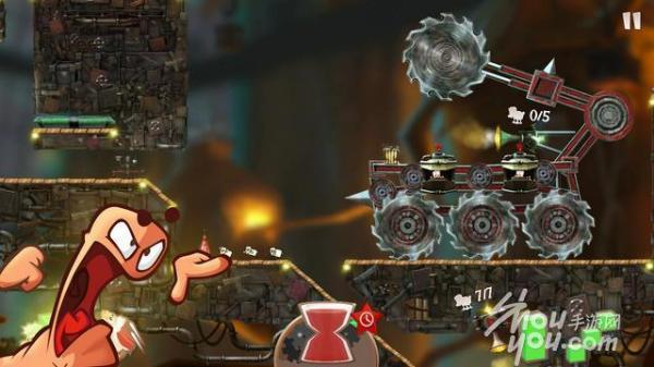 游戏画面:2D画面,和《百战天虫》非常类似的卡通风格,毕竟出自同一个团队嘛。游戏的主角是一群可伶的羊,它们为了避免被制作成“超级绵羊”炸弹而决定一起逃跑!这设定真是萌萌哒!游戏的场景制作非常精良,整体画面素质上佳。