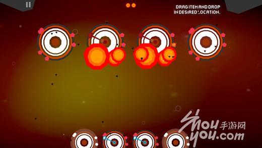 游戏操作:在游戏的每个关卡中,玩家共有3个炸弹可使用,将关卡内所有行星系统炸毁即可通关。玩家要做的就是考虑炸弹放置的位置,然后点击屏幕放置即可,然后就等待着爆炸以及各种连锁反应了。