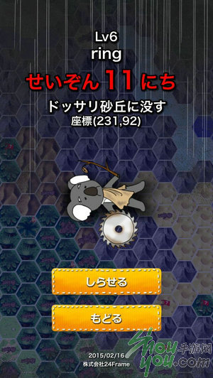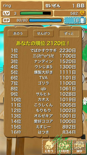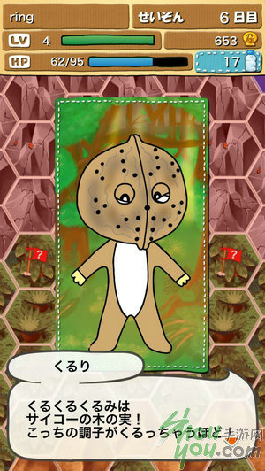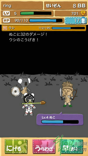 “项环”记录了你在野外生存的日子,离开部落之后,每走一步都会消耗一些HP,离部落越远,HP消耗得越多。途中遇到的敌人,有的弱小有的强大,能够生存下去,除了看能力,还有便是运气。每存活一天,你的处境便会更加危险一点。但游戏的宗旨,部落的期望以及你的终极目标,便是在野外存活1000日!