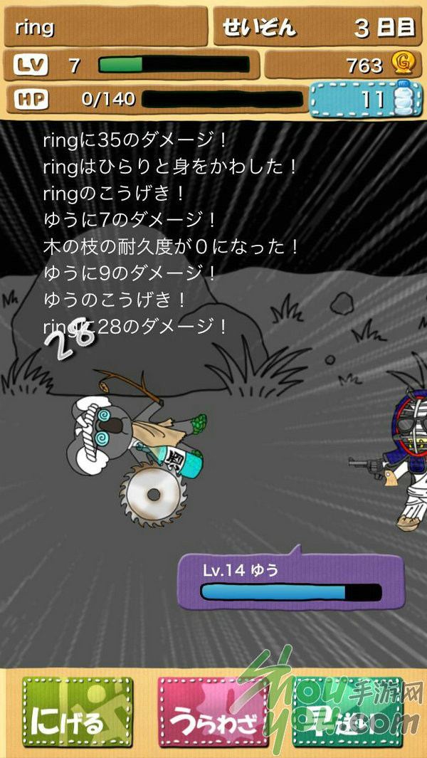 走着走着,突然遇到一个家伙,问我要不要和他组成联盟,条件是给他一瓶水。(如上图所示,当左下角出现小人图标时,便代表盟友出现)。一开始,我库存里的水大约有20几瓶,要知道,这可是生存之水,——它可以在战斗中帮你恢复HP或复活自己,也可以用来购买精装的道具,非常珍贵,数量有限,用一瓶便是少一瓶,用空之后,只能花课金购买。