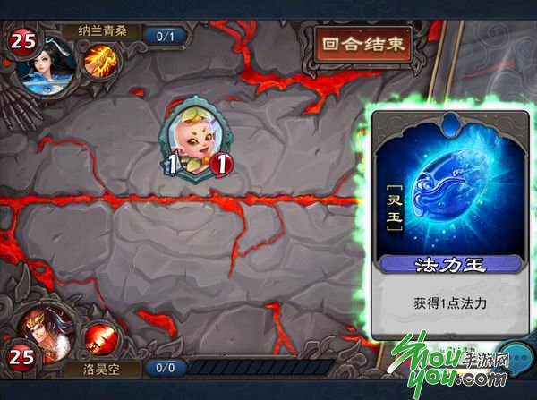 首先既然是回合制卡牌那么游戏就有分先后手,后手玩家可以获得一张法术卡“0消耗,让友方随从获得迅捷技能”也就是说可以让一个新上场的随从跳过休息回合马上进行攻击。然后在一局卡牌战斗之中,玩家需要使用卡牌“法力玉”来为自己的角色扩充法力上限和法力值,而不像《炉石传说》中的每回合自然增长一个法力水晶。