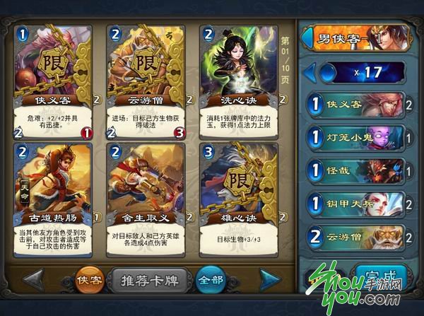 小编贝斯对侠客“洛昊空”这一人物情有独钟,该人物的角色技能“侠义道”可以在触发之后的每个自己的回合结束时随机给自己的随从+1/+1,持续的强化可以让玩家在之后的对战中获得强大的站场资本。而同属侠客的“沈傲霜”的人物技能“正气决”则是在激发技能之后连续5次的使用随机给某个友方随从+1/+1,让玩家在前期战场压制力最大化的体现,不过一次牌局只能使用一次这一技能属于唯一触发特技各有优劣。