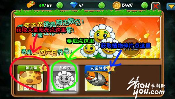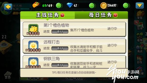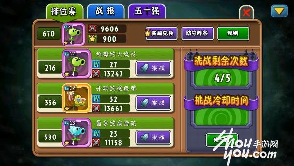 4.每次升级都要花费大量的阳光和金钱,一般我们要通过挑战获得。挑战的同时还有可能获得钻石或植物碎片!