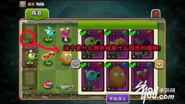 2.植物摆放的位置可以根据属性而来,金木水火土打底是什么根本就是鸡同鸭讲嘛,虽然不会看属性,但是我们可以看颜色哦!
