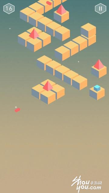 只要用手指点击前方的路方块就会自行跳跃,后面的路也会坍塌,在前进的过程中方块会遇到很多弹射出来的小球,小球的弹射频率不同,玩家要仔细观察小球弹射的频率避开小球,游戏进行越快玩家遇到的弹球就越多,而且小球弹射的频率也更快,所以游戏就是在胆战心惊避开小球和脚底的“独木桥”的颤栗中度过!